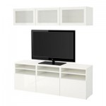 БЕСТО Шкаф для ТВ, комбин/стеклян дверцы - белый/Сельсвикен глянцевый/белый матовое стекло, направляющие ящика, плавно закр