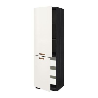 МЕТОД / ФОРВАРА Высокий шкаф+полки/3 ящика/2 дверцы - 60x60x200 см, Мэрста белый, под дерево черный