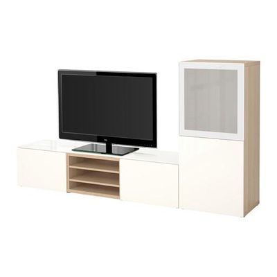 БЕСТО Шкаф для ТВ, комбин/стеклян дверцы - направляющие ящика,нажимные, под беленый дуб/Сельсвикен глянцевый/белый матовое стекло