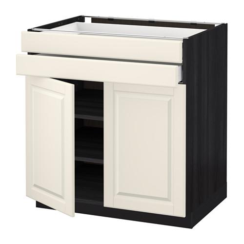 МЕТОД / МАКСИМЕРА Напольный шкаф/2дверцы/2ящика - под дерево черный, Будбин белый с оттенком, 80x60 см