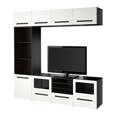 БЕСТО Шкаф для ТВ, комбин/стеклян дверцы - направляющие ящика, плавно закр, черно-коричневый/Марвикен белый прозрачное стекло