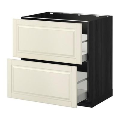 МЕТОД / МАКСИМЕРА Напольн шкаф 2фрнт/2выс ящ - 80x60 см, Будбин белый с оттенком, под дерево черный