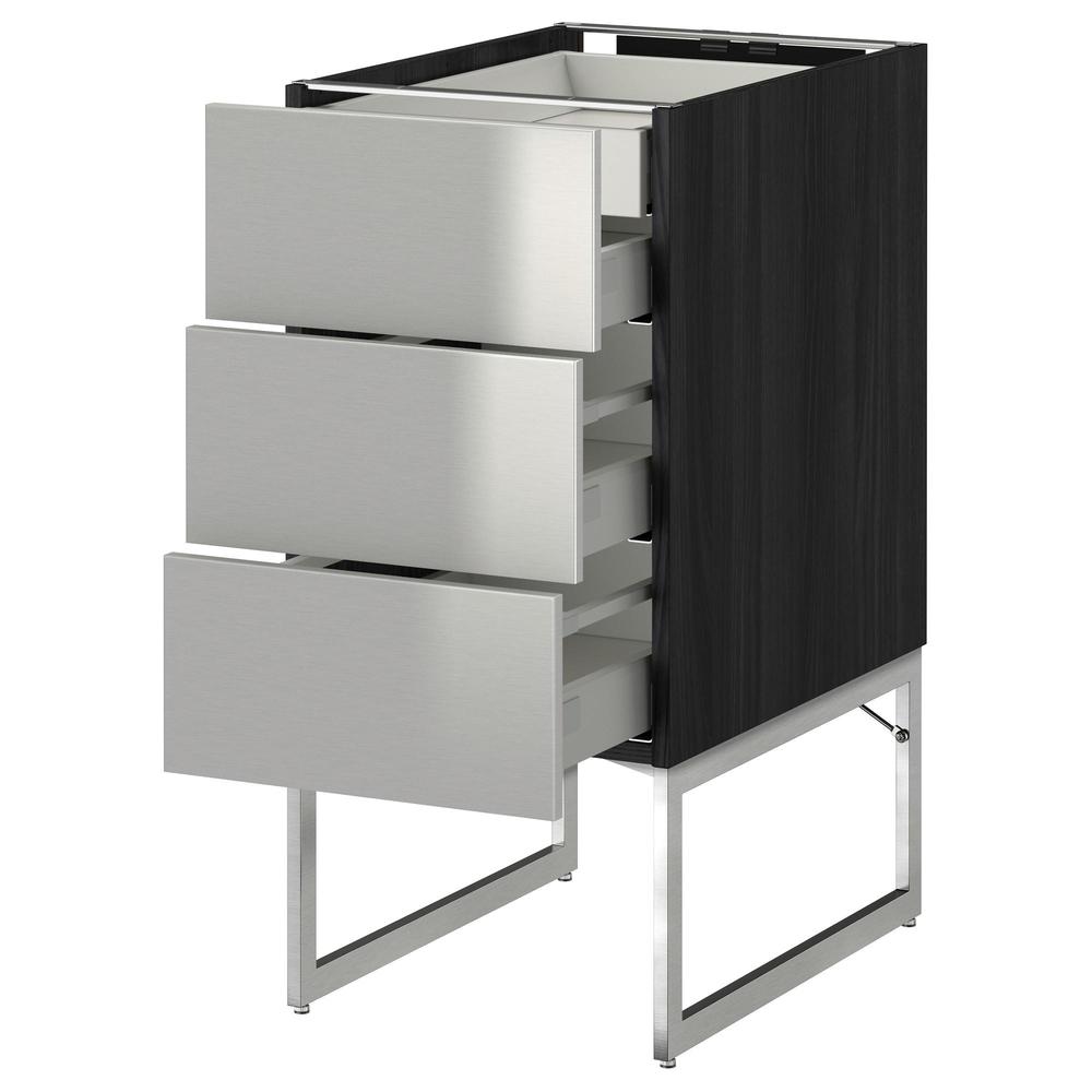 МЕТОД / МАКСИМЕРА Напольн шкаф 3фронт пнл/2низ/2ср ящ - под дерево черный, Гревста нержавеющ сталь, 40x60x60 см