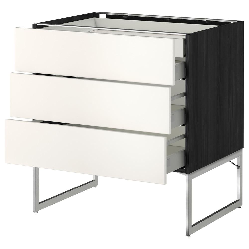 МЕТОД / МАКСИМЕРА Напольн шкаф 3фронт пнл/2низ/2ср ящ - под дерево черный, Веддинге белый, 80x60x60 см