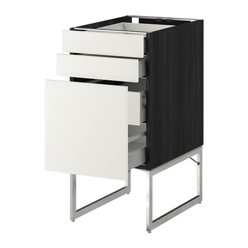 МЕТОД / МАКСИМЕРА Напольн шкаф 3фронт пнл/2низ/2ср ящ - под дерево черный, Хэггеби белый, 40x60x60 см