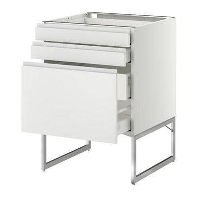 МЕТОД / МАКСИМЕРА Напольн шкаф 3фронт пнл/2низ/2ср ящ - 60x60x60 см, Нодста белый/алюминий, белый