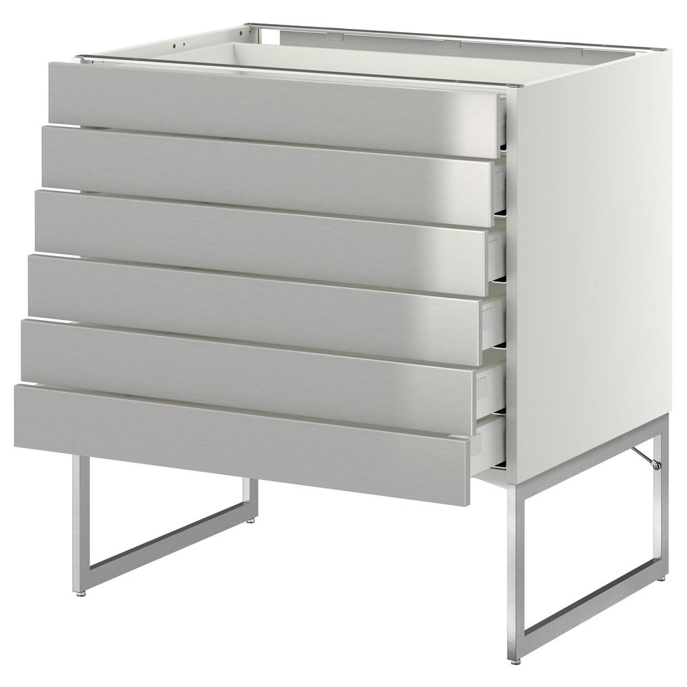 МЕТОД / МАКСИМЕРА Напольн шкаф 6фронт пнл/6 низ ящ - белый, Гревста нержавеющ сталь, 80x60x60 см