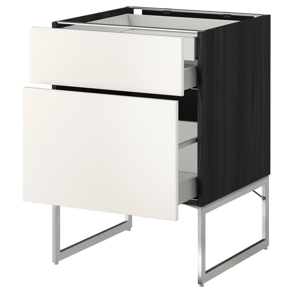 МЕТОД / МАКСИМЕРА Напольн шкаф 2фронт пнл/2низ/1вс ящ - под дерево черный, Веддинге белый, 60x60x60 см
