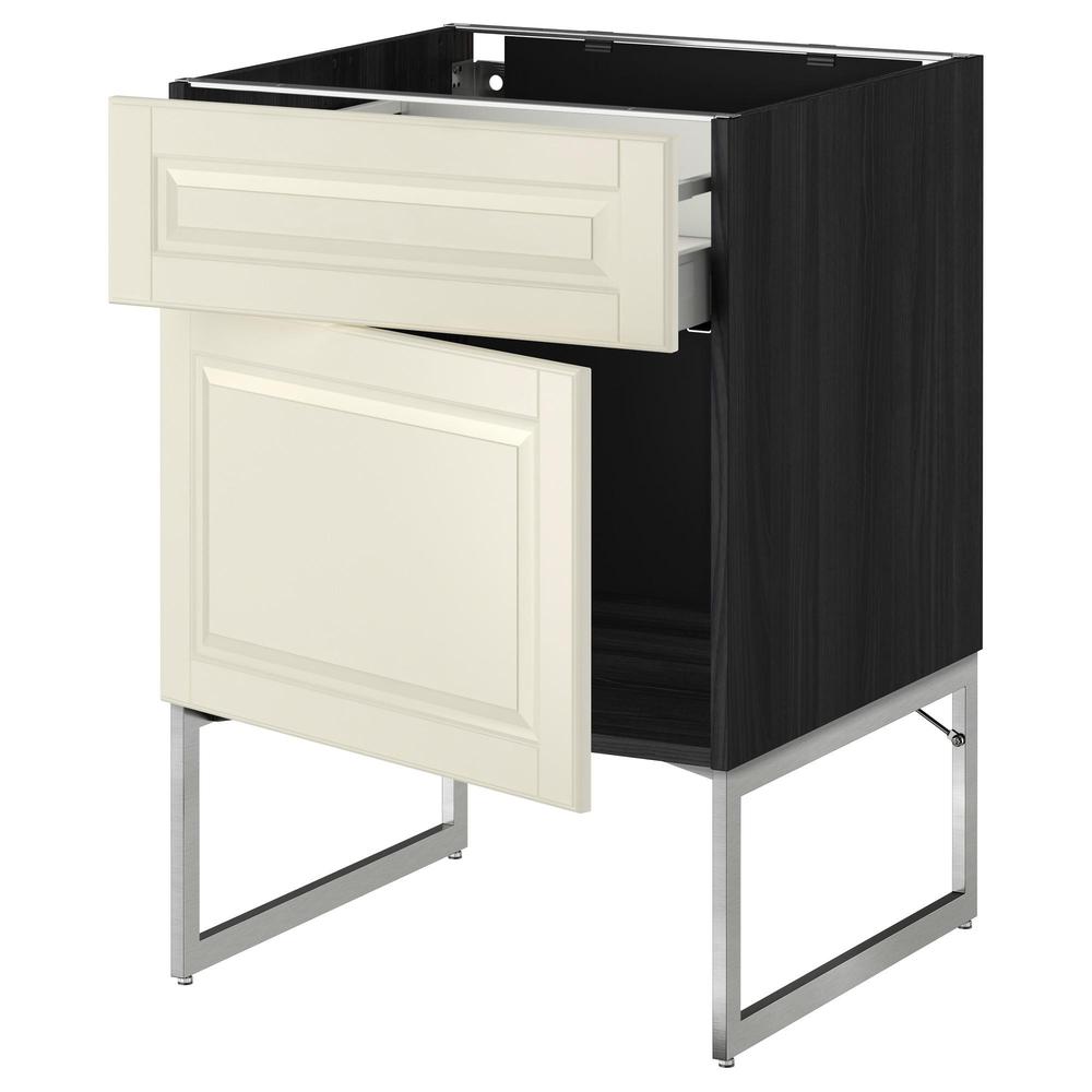 МЕТОД / МАКСИМЕРА Напольный шкаф с ящиком/дверью - под дерево черный, Будбин белый с оттенком, 60x60x60 см