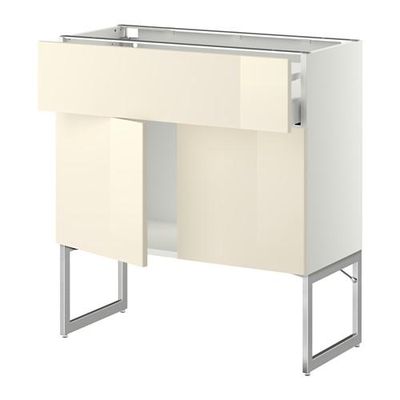 МЕТОД / МАКСИМЕРА Напол шкаф/полки/ящик/2двери - 80x37x60 см, Рингульт глянцевый кремовый, белый