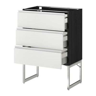 МЕТОД / МАКСИМЕРА Нплн шк 3 фрнт/3 средн ящика - 60x37x60 см, Нодста белый/алюминий, под дерево черный