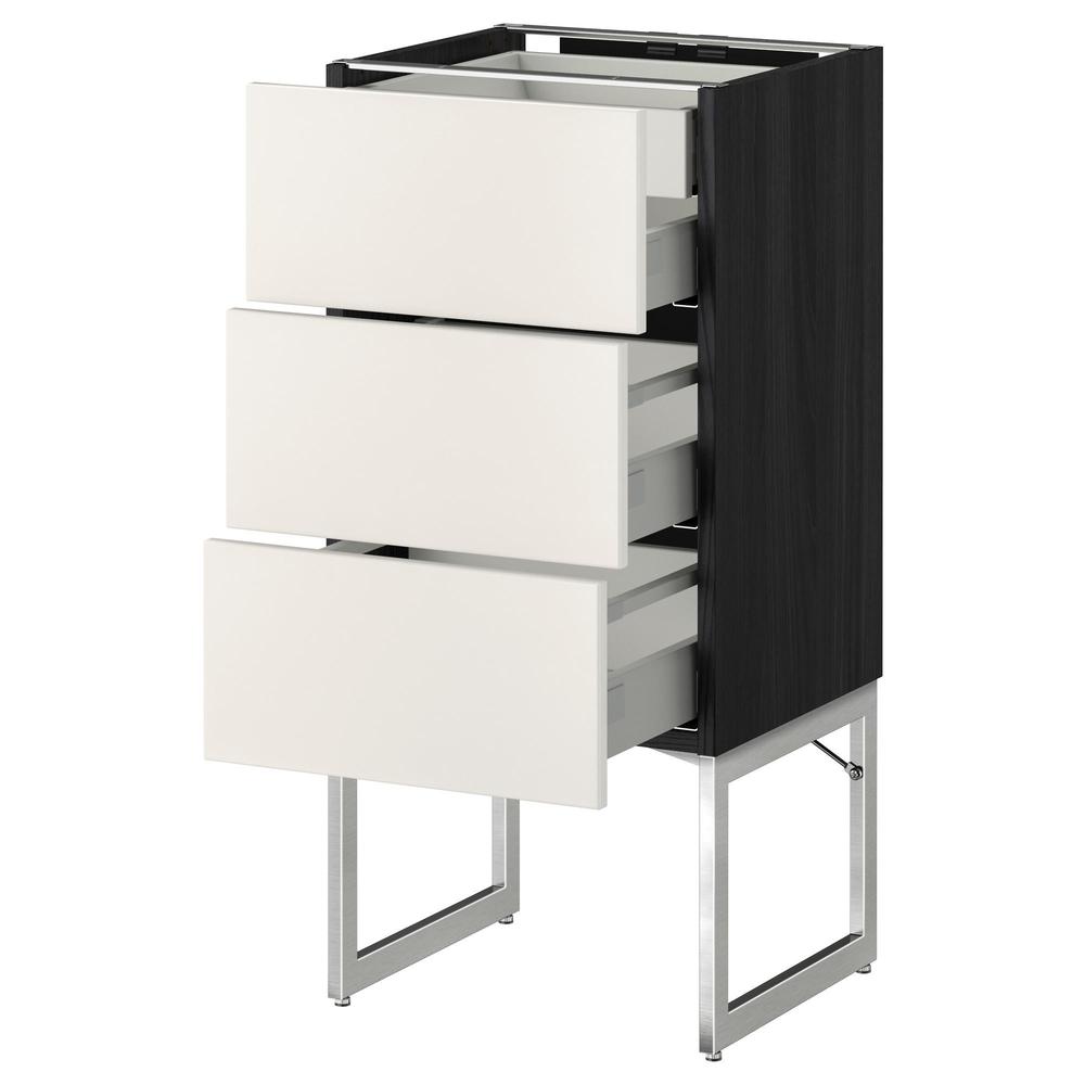 МЕТОД / МАКСИМЕРА Напольн шкаф 3фронт пнл/2низ/2ср ящ - под дерево черный, Веддинге белый, 40x37x60 см
