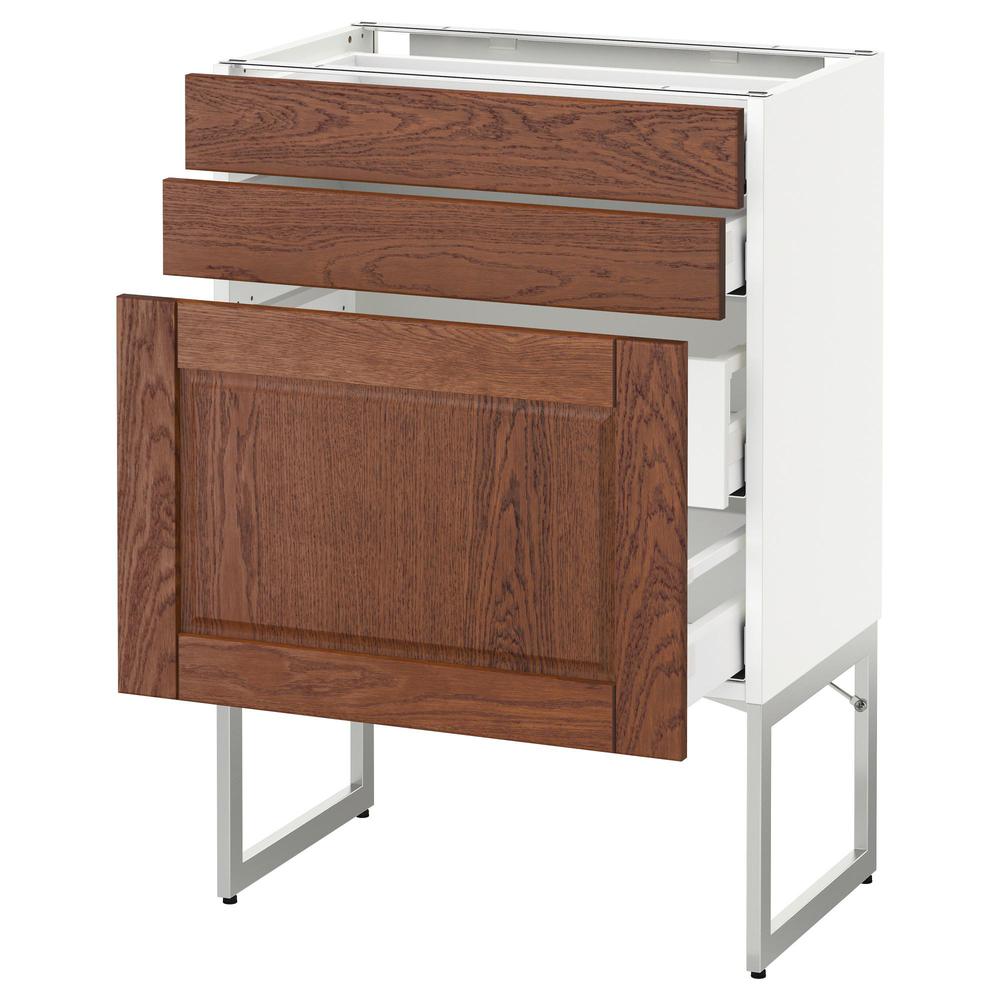 МЕТОД / МАКСИМЕРА Напольн шкаф 3фронт пнл/2низ/2ср ящ - белый, Филипстад коричневый, 60x37x60 см