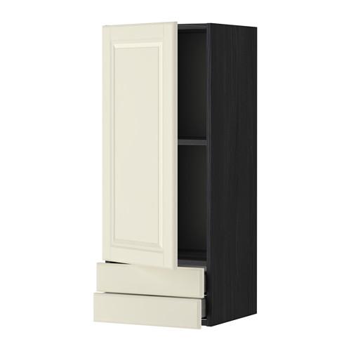 МЕТОД / МАКСИМЕРА Навесной шкаф с дверцей/2 ящика - под дерево черный, Будбин белый с оттенком, 40x100 см