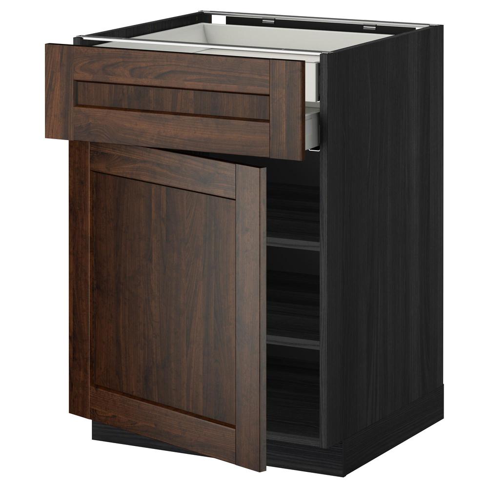 МЕТОД / МАКСИМЕРА Напольн шкаф двр/фр пнл/плк/2низ ящ - под дерево черный, Эдсерум под дерево коричневый, 60x60 см