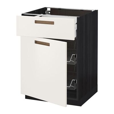 МЕТОД / МАКСИМЕРА Напольн шкаф с пров корз/ящ/дверью - 60x60 см, Мэрста белый, под дерево черный