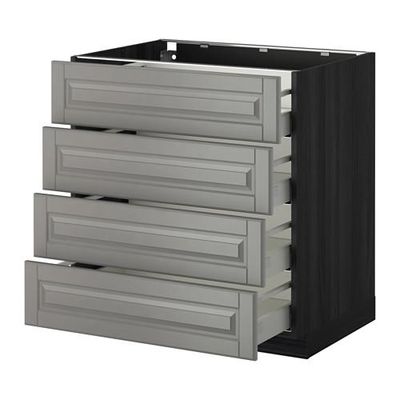 МЕТОД / МАКСИМЕРА Напольн шкаф 4 фронт панели/4 ящика - 80x60 см, Будбин серый, под дерево черный