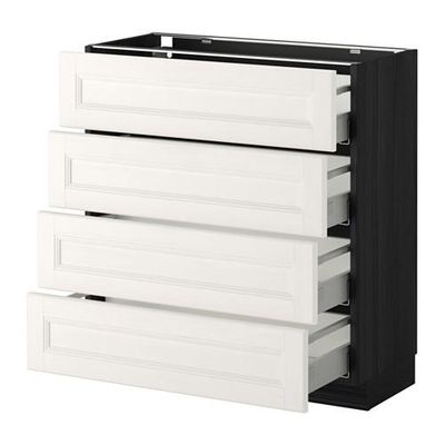 МЕТОД / МАКСИМЕРА Напольн шкаф 4 фронт панели/4 ящика - 80x37 см, Лаксарби белый, под дерево черный