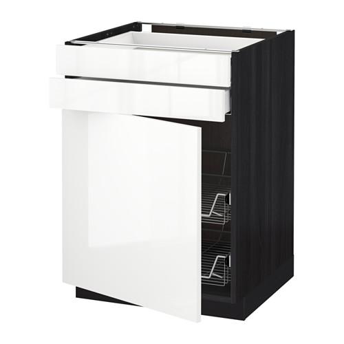 МЕТОД / МАКСИМЕРА Напольн шкаф/дверца/2ящ/првл крзн - под дерево черный, Рингульт глянцевый белый, 60x60 см