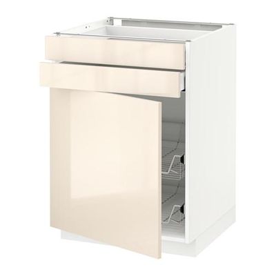 МЕТОД / МАКСИМЕРА Напольн шкаф/дверца/2ящ/првл крзн - 60x60 см, Рингульт глянцевый кремовый, белый