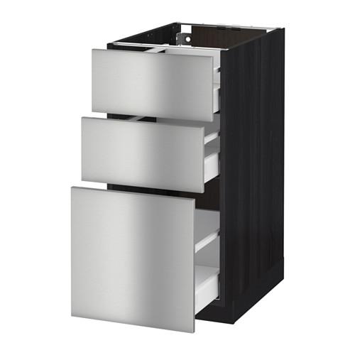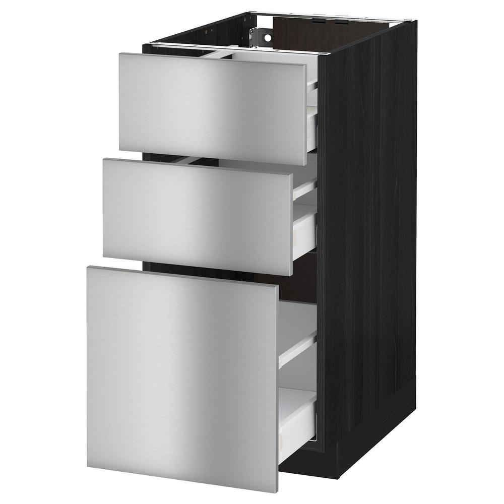 МЕТОД / МАКСИМЕРА Напольный шкаф с 3 ящиками - под дерево черный, Гревста нержавеющ сталь, 40x60 см
