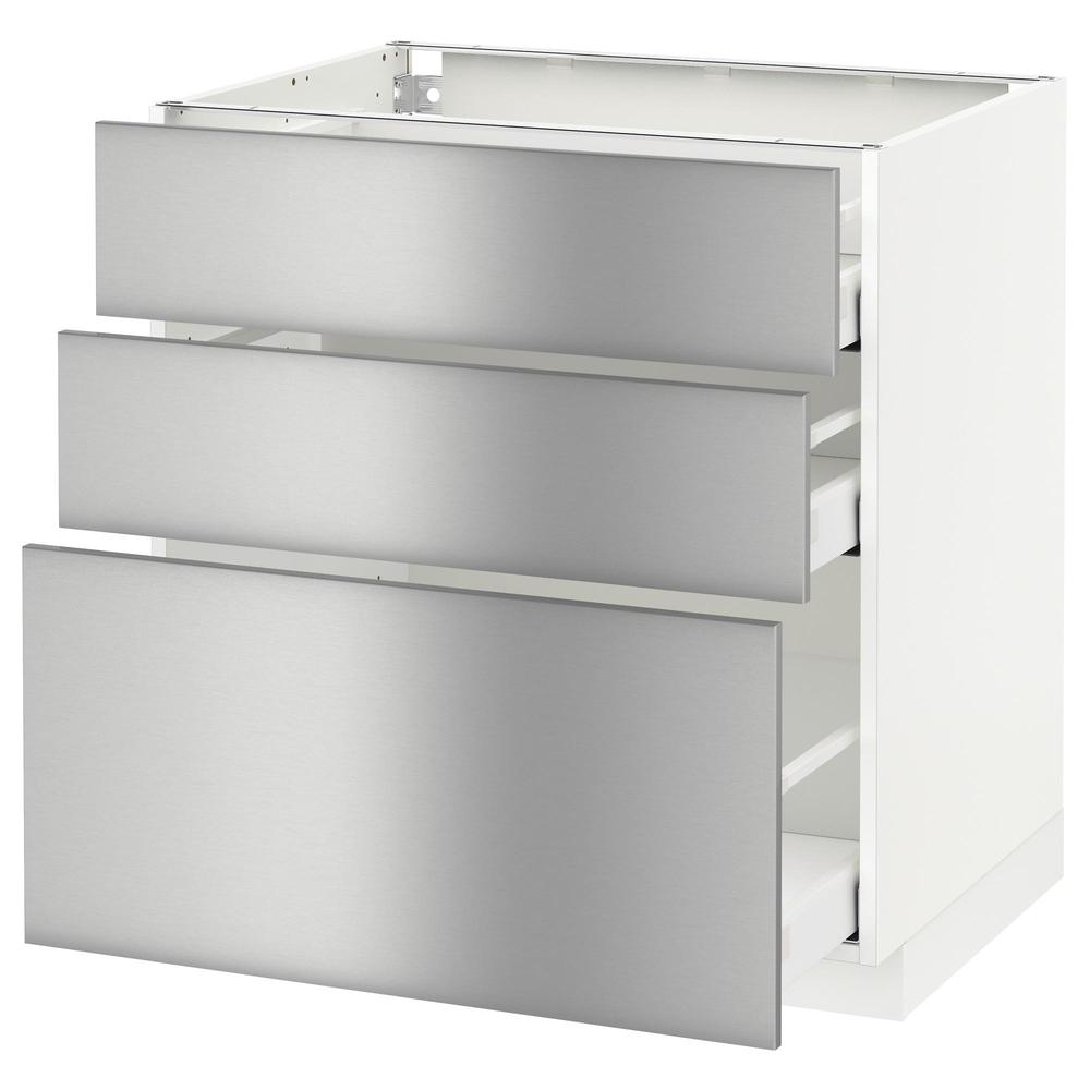 МЕТОД / МАКСИМЕРА Напольный шкаф с 3 ящиками - белый, Гревста нержавеющ сталь, 80x60 см