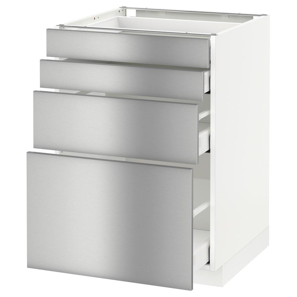 МЕТОД / МАКСИМЕРА Напольн шкаф 4 фронт панели/4 ящика - белый, Гревста нержавеющ сталь, 60x60 см