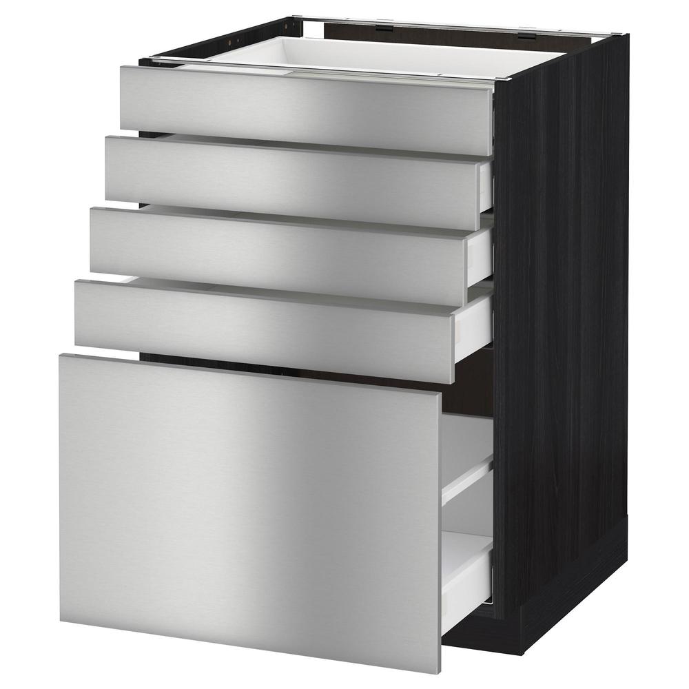 МЕТОД / МАКСИМЕРА Напольный шкаф с 5 ящиками - под дерево черный, Гревста нержавеющ сталь, 60x60 см
