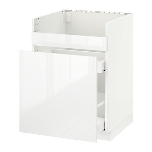 МЕТОД / МАКСИМЕРА Нап шкаф п/мойку ДУМШЁ/3фасада/2ящ - белый, Рингульт глянцевый белый, 60x60 см