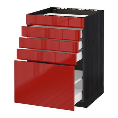 МЕТОД / МАКСИМЕРА Напольн шк д/вар панели/5фасад/4ящ - 60x60 см, Рингульт глянцевый красный, под дерево черный