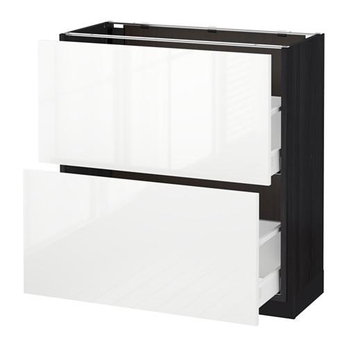 МЕТОД / МАКСИМЕРА Напольный шкаф с 2 ящиками - под дерево черный, Рингульт глянцевый белый, 80x37 см