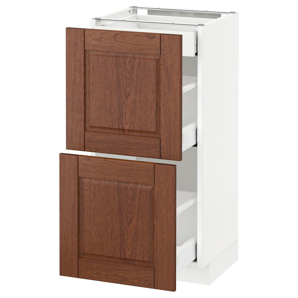 МЕТОД / МАКСИМЕРА Напольный шкаф/2фасада/3ящика - белый, Филипстад коричневый, 40x37 см
