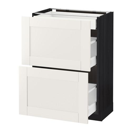 МЕТОД / МАКСИМЕРА Напольный шкаф/2фасада/3ящика - под дерево черный, Сэведаль белый, 60x37 см