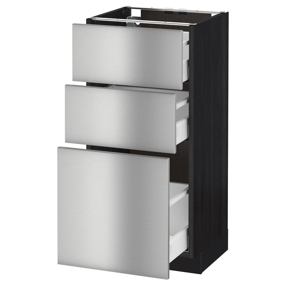 МЕТОД / МАКСИМЕРА Напольный шкаф с 3 ящиками - под дерево черный, Гревста нержавеющ сталь, 40x37 см