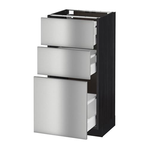 МЕТОД / МАКСИМЕРА Напольный шкаф с 3 ящиками - под дерево черный, Гревста нержавеющ сталь, 40x37 см