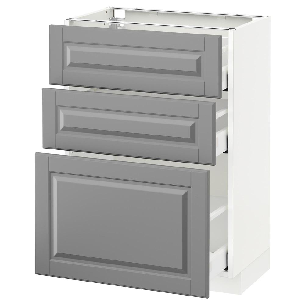 МЕТОД / МАКСИМЕРА Напольный шкаф с 3 ящиками - белый, Будбин серый, 60x37 см