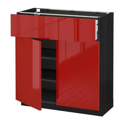 МЕТОД / МАКСИМЕРА Напольный шкаф+ящик/2дверцы - 80x37 см, Рингульт глянцевый красный, под дерево черный