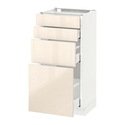 МЕТОД / МАКСИМЕРА Напольн шкаф 4 фронт панели/4 ящика - 40x37 см, Рингульт глянцевый кремовый, белый