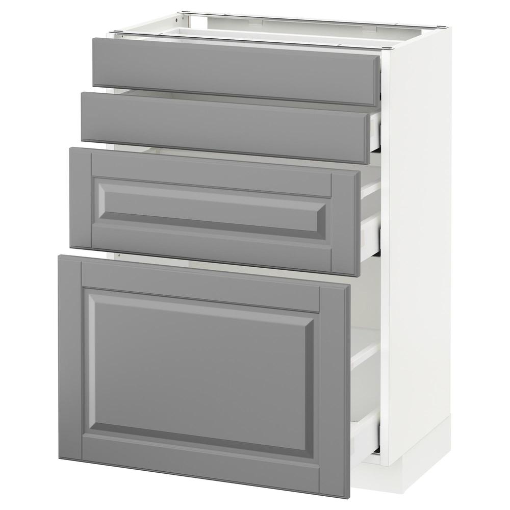 МЕТОД / МАКСИМЕРА Напольн шкаф 4 фронт панели/4 ящика - белый, Будбин серый, 60x37 см