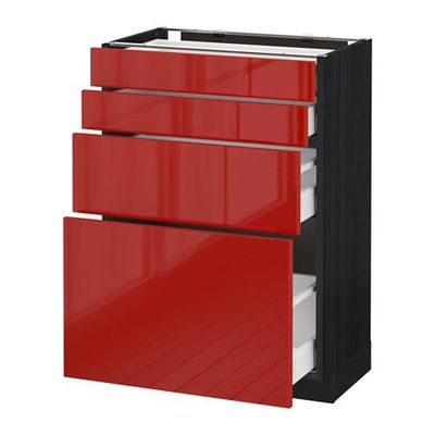 МЕТОД / МАКСИМЕРА Напольн шкаф 4 фронт панели/4 ящика - 60x37 см, Рингульт глянцевый красный, под дерево черный
