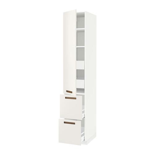 МЕТОД / МАКСИМЕРА Высокий шкаф+полки/4 ящика/2дверцы - 40x60x220 см, Мэрста белый, белый