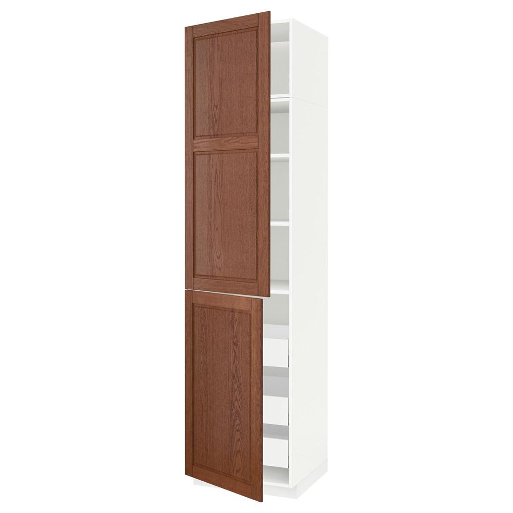 МЕТОД / МАКСИМЕРА Высокий шкаф+полки/3 ящика/2 дверцы - белый, Филипстад коричневый, 60x60x240 см