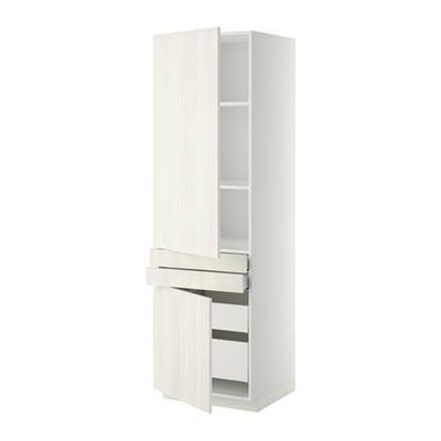 МЕТОД / МАКСИМЕРА Выс шкаф+полки/4 ящк/2двр/2фрнт - Росдаль белый ясень, белый