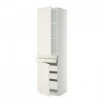 МЕТОД / МАКСИМЕРА Высок шкаф+полки/5ящк/2дверцы/2фрнт - 60x60x220 см, Рингульт глянцевый кремовый, белый