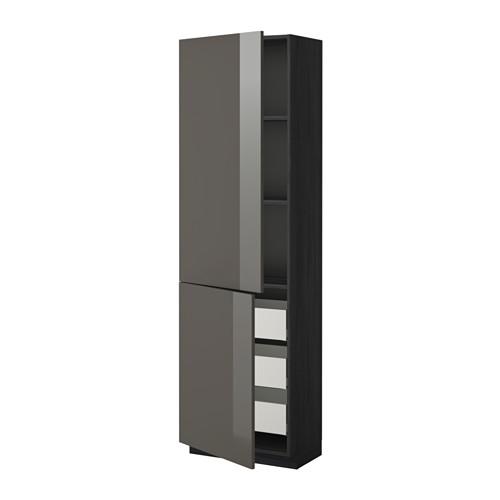 МЕТОД / МАКСИМЕРА Высокий шкаф+полки/3 ящика/2 дверцы - 60x37x200 см, Рингульт глянцевый серый, под дерево черный