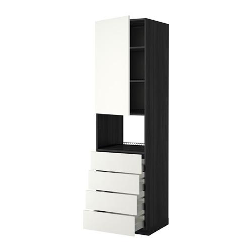 МЕТОД / МАКСИМЕРА Высок шкаф д/духовки/дверца/4ящика - под дерево черный, Хэггеби белый, 60x60x220 см