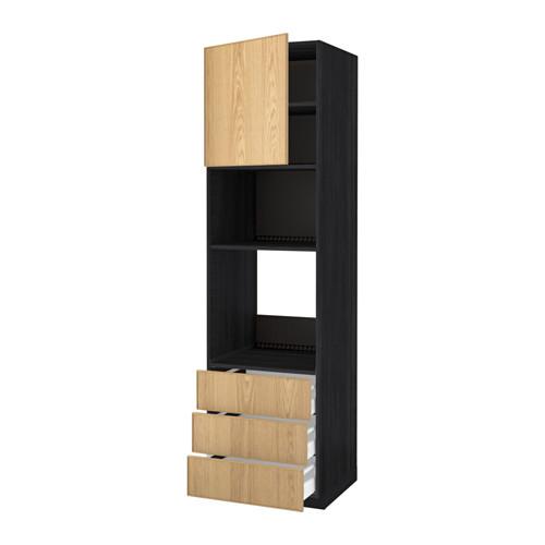 МЕТОД / МАКСИМЕРА Высок шкаф д/духовки/СВЧ/дверца/3ящ - под дерево черный, Экестад дуб, 60x60x220 см