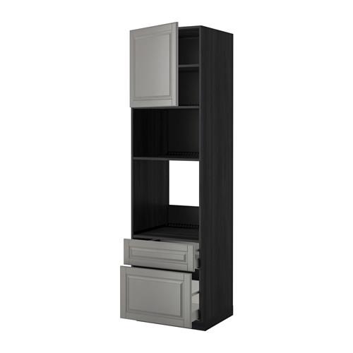 МЕТОД / МАКСИМЕРА Высок шкаф д/духовки/СВЧ/дверца/2ящ - под дерево черный, Будбин серый, 60x60x220 см