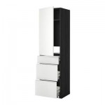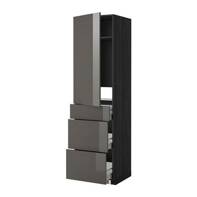 МЕТОД / МАКСИМЕРА Выс шкаф д/холодильн, с дврц/3 ящ - Рингульт глянцевый серый, под дерево черный