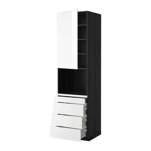 МЕТОД / МАКСИМЕРА Высокий шкаф д/комбинир СВЧ/4 ящика - под дерево черный, Рингульт глянцевый белый, 60x60x220 см